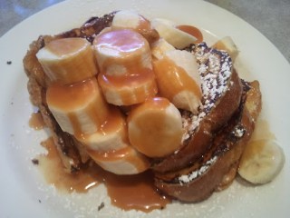 The menu item that really stood out to us: the banana and caramel french toast. Behold it in all its glowing beauty. The french toast was cooked to perfection, and it was a wonderful excuse to have dessert for breakfast. We couldn’t have asked for anything more. The omelets and freshly squeezed OJ aren’t bad either.