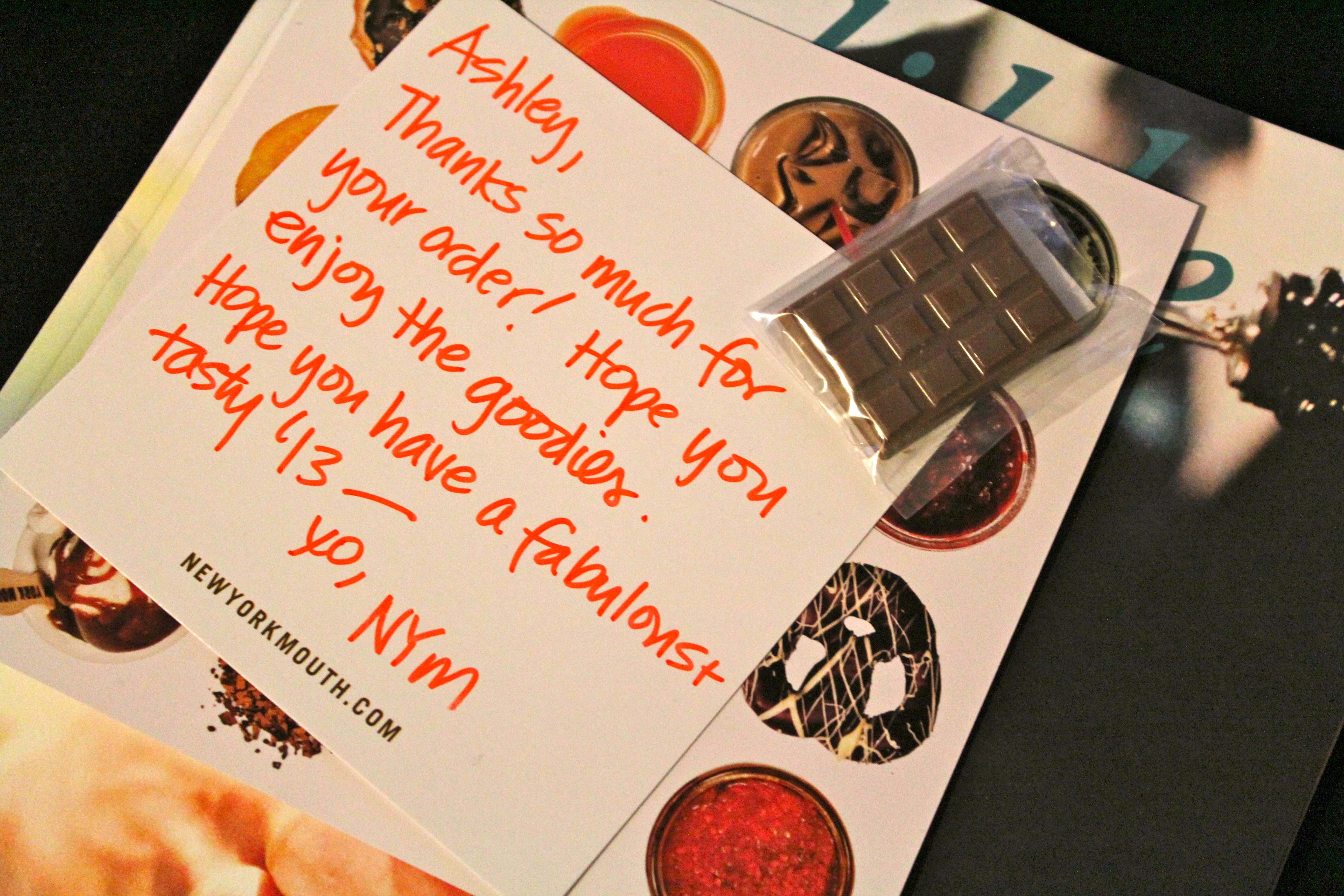 New York Mouth is one in a million. You can order high-quality small batch foods, shipped straight to your door. Plus, I could easily spend hours perusing their gorgeous site, complete with colorful pictures of all the food and specific descriptions of each product– some with hilarious six-word reviews. There’s something for everyone—gluten-free, vegan, and carnivore customers alike. And as awesome as their website looks, the packages they send are even better. There’s so much attention to detail, with a personalized note, a free chocolate, and a free canvas tote bag (that I now use to take lunches to work). Plus, each of the items is carefully and individually wrapped to make sure it survives shipping. It can’t get any better.