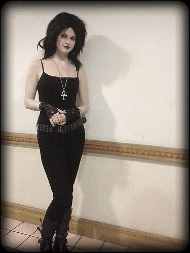 If you’re like me and you already have a ton of black in your wardrobe, this costume is a cinch. Just use liquid eyeliner to draw Death’s signature swirls around the eyes and grab an Ankh necklace. You can also add Death’s black umbrella to complete the look.