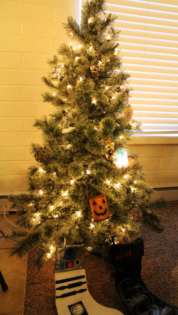 For us, December means slowly adding more ornaments to a geeky and eclectic Christmas tree. Last year, we collected skulls, Star Wars ornaments, and a few Halloween-themed ornaments for our first tree together. This year we’ve added some super cool Star Wars stockings, a Raphael ninja turtle, and a nostalgic movie theater. I’m sure we won’t be able to resist adding more as the season progresses. And if any of you have suggestions for geeky tree toppers, we’re all ears!